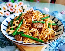 - 6. 下入豆角翻炒均匀,再加入生抽,老抽,蚝油,盐,五香粉,和适量的水,小火炖5分钟