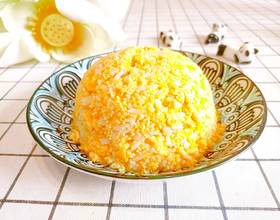 1、米饭中加入黄小米,更加营养健康2、煮米饭不能煮得太软,否则蛋炒饭水分多,影响口感3、植物油烧至180度,调成小火再倒入鸡蛋,这样的鸡蛋更嫩滑4、把蛋炒饭盛入碗中压平再倒扣,蛋炒饭的形状更美