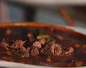 - 11. 汤面上撒剩余牛肉丁,少许香葱,即可出锅