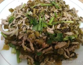 - 10. 酸菜炒出香味,倒入炒好的肉丝,翻炒片刻放入少许盐即可出锅。