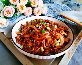 - 6. 下入鱿鱼翻炒均匀,加入2勺生抽