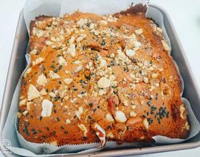 - 8. 表面撒上喜欢的坚果,我家里有黑芝麻跟核桃碎,将就一下。