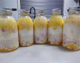 牛奶,椰汁,芒果1:1:1打成果泥
