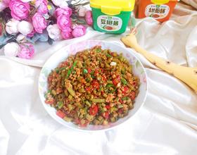 因为豇豆和调味料中已经盐味很重了,所以过程中不要再*。