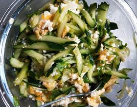 鸡蛋去掉蛋黄,放电饼铛煎熟切丝