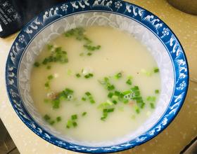 10分钟左右,熬至汤色浓白,放少许盐和胡椒粉。