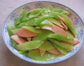 将莴苣与香肠加盐、味精、香油拌匀,上桌。