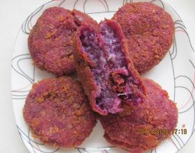 把紫薯碾成泥,加入一点白糖搅拌均匀。