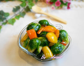 小知识:甘蓝小包菜也称抱子甘蓝(BrusselsSprouts),抱子甘蓝的小叶球像小型的圆白菜,只是不在植株的顶部结球,而是在叶腑上结成小球,每一叶腋都能结一小叶球,每株可结几十至百余个球。富含各种营养物质,其中以胡萝卜素、维生素C、微量元素硒和钼含量为最高,其性味甘、平、无毒,入胃径,具有止痛生肌的作用。