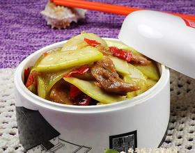 放入腌制好的肉片,快速翻炒均匀至肉片变色。