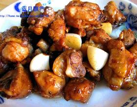 放入姜蒜一起炒香,加适量水,将鸡腿煮熟,加入盐,鸡精。