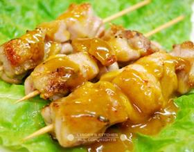 也可用鸡胸肉做,不过鸡腿肉有弹性,口感更好;刷油是为了保持鸡肉的水分不被过多烤干,因此不必抹太多,看上去不干燥就可以了;淋汁可用咖喱块加上牛奶/水稀释而成。