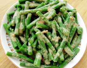 锅内加水烧开,将豇豆角放入开水锅内焯2分钟,锅内加入少许精盐和色拉油。