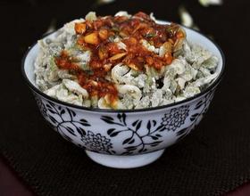 槐花放入盐,黑胡椒,鸡精搅拌均匀。