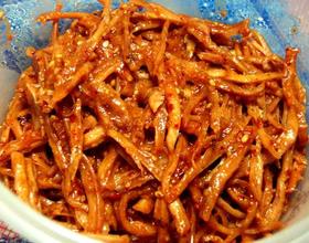 这道小菜可以当零食吃,多做些放在冰箱里,想吃的时候拿出来,凉凉的很不错。