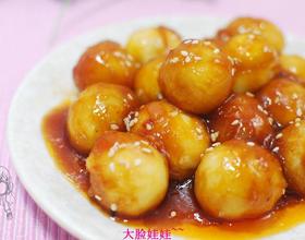 番茄沙司、白糖、醋、生抽、淀粉调成味汁,下锅内炒熟,再倒入炸好的鹌鹑蛋,大火翻炒均匀即可,味道已够,不用再放盐和精味了。