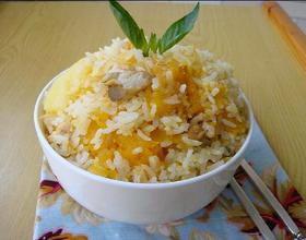 再下入洗好的大米,干贝,鸡丝,放盐,蚝油炒匀。