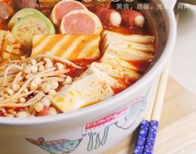 辣白菜锅虽然红红的,但是因为辣白菜是用的辣椒都是去了籽的,所以并不很辣。但是红红颜色会让人立刻有食欲,而且辣白菜给炖锅增加了不一样的风味。温暖好吃。