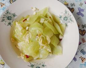 西瓜皮去掉外皮,内瓤,片成薄片。
