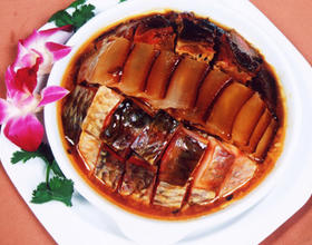 闷至水干即可。如果鱼块事先没泡而很干又硬的话,在上一步烧开后,盛入盆中置入高压锅20分钟也可,我以前都是这么做的,味道也非常的好。