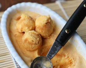 - 7. 用打蛋器打5分钟左右,淡奶有些膨发了,再放回冰箱冷冻,南瓜冰淇淋就做好了。