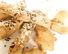 - 12. 余下的多余面皮重新揉成团,切成段,烤成棒形饼干。烤前刷了一层油,点缀芝麻,烤箱180度20分钟直到上色