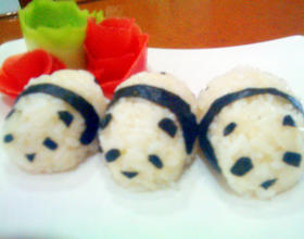 米饭中间包入西葫芦,沙拉,也可以换成其他东西比如肉松什么的,或者什么都不放也行--我这个算是全素的。