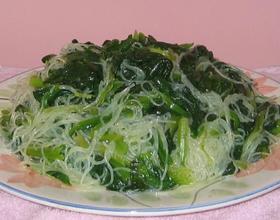 将菠菜段一并倒入锅中,加入少许味精,与粉丝一起拌匀即可。