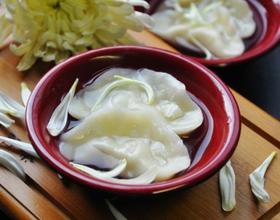 - 1. 菊花瓣的处理。将菊花瓣用清水洗净后撒上盐,抓揉并腌制。演出水分后,捏干在清水中浸泡,捞出,控干水分