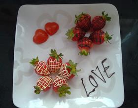 洗净草莓挤上黑白巧克力用其他水果瓜菜装饰即可