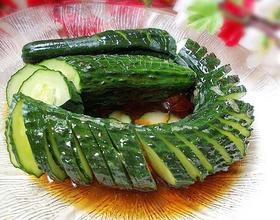 黄瓜洗净,垫两根筷子在下面切黄瓜,我居然只切了一面。