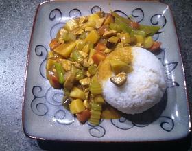 - 5. 提前蒸米饭哦,不要忘了,把米饭盛到小碗里,压实,口道盘子上,再浇上咖喱鸡,大功告成了,很简单吧,营养也非常丰富
