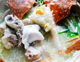 - 1. 鲜活江蟹一个;猪酮骨切块。