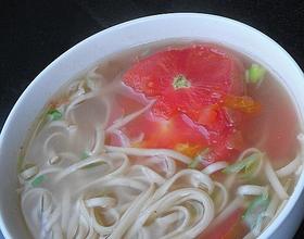 主辅料:挂面、牛肉粉、西红柿、葱。