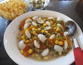 选择自己剥好的甜玉米粒或买罐头的甜玉米粒都一样。我是为了图方便,开罐就能食用的一种。