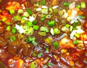 爆火、倒入步骤1爆香。然后倒入豆腐和血炒入味。倒水淹过豆腐和血。煮开。然后放入银丝粉。煮开。起锅时倒入步骤2