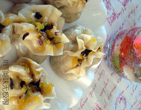 擀成面皮,包入馅料(擀面棍不给力,擀的不像烧卖皮)。