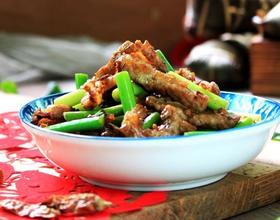 - 3. 板筋用少许盐、丁点儿糖、少许淀粉腌制均匀后加入少许油封油