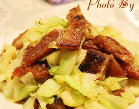 倒入椰菜丝,煸炒至椰菜六分熟。