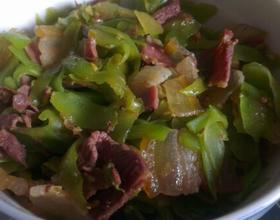 锅里下油,五分热时加入豆瓣或者火腿酱,注意开小火不要炒糊。然后加入火腿翻炒,最后加入莴笋,起锅时可以不用放盐了,因为火腿是有盐的,莴笋也拌过盐