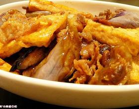 - 3. 炒锅中倒入适量炸茄子的油,烧热后,下葱末和姜末爆香,随即倒入肥牛片,调入料酒,翻炒至肉变色,依次倒入茄子和豆腐,调入豆瓣酱、生抽和白糖,翻炒均匀,最后调入鸡精翻炒几下关火~
