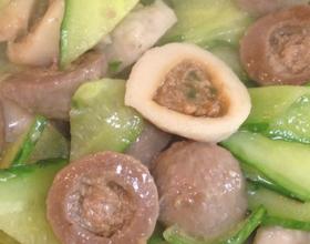 放入鱼丸,瞬间鱼丸的淀粉就开始捣蛋粘锅。因此要从开始下入油锅时就一直不断地翻炒鱼丸,同时快速放入黄瓜和撒入些盐,用盐把黄瓜的水份杀出来防止鱼丸淀粉粘锅。(如果您平时做饭不够熟练,可以先少量点点水,保证不糊锅,再放入黄瓜和盐)