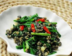 螺狮肉炒至会出很多水,所以要先炒至片刻盛出,把水分倒掉不要,才不影响成菜的口感。这是一道大火快手菜,不要炒时间长以免螺狮肉变老。炒螺狮肉最好用白酒,去腥效果好。