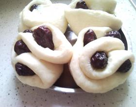 - 3. 把面放到温暖的地方发酵,趁着空闲时段我们处理大枣,大枣要洗净,在开水中煮3分钟,让枣吐出白沫,这样蒸出来才好吃!