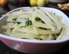 炒这道菜一定要用大火爆炒,时间不能过久,不然土豆太熟就没有爽脆的口感了。