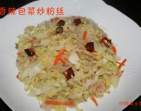 转大火,下包菜丝翻炒,待包菜变软出水,下粉丝继续翻炒,加入蘑菇精、盐、糖调味,盖上盖子稍微焖上两分钟;