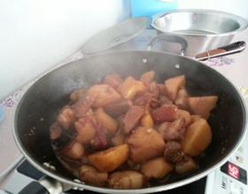 - 6. 炖到水剩下一半的时候放入切好的大块土豆继续小火慢炖直到汤汁大致收干翻炒均匀就可以吃啦(*@ο@*)哇