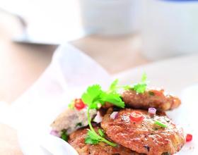 老豆腐捏碎跟猪肉拌匀,加葱花跟姜末、盐、海天特级金标生抽、白糖、少许料酒拌匀。