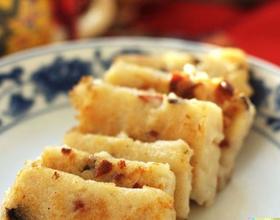 - 9. 倒入容器中,蒸40分钟。凉后冷藏。吃食切片煎香。也可加热直接吃