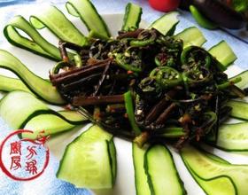 水蕨菜上面有小绒毛和细刺,洗的时候小心扎手。水蕨菜是蕨类植物的一种,蕨类植物是地球上最早出现的陆生植物类群,据说已经有几千万年的历史了。它是野生蔬菜里的“山菜之王”,含有丰富的蛋白质、碳水化物、维生素矿物质,以及脂肪等多种营养成分,具有活血解毒、止血止痛的功效。